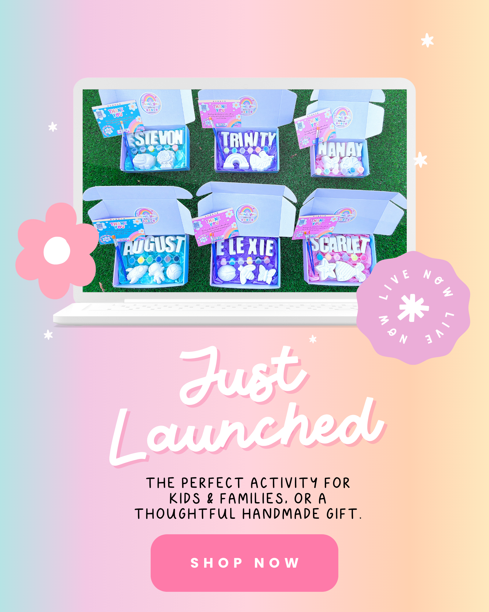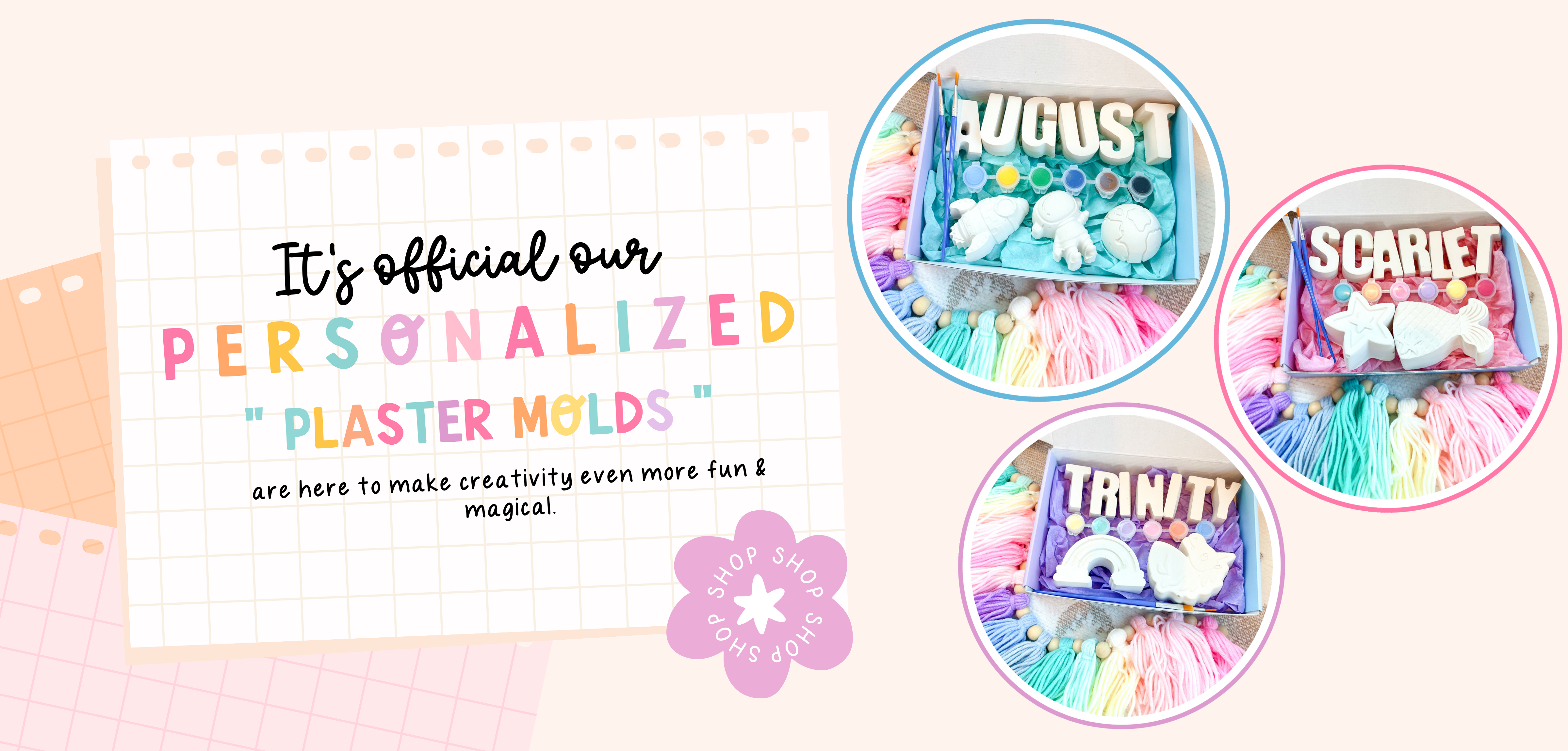 “A handmade craft kit designed just for you! Create, paint, and enjoy a one-of-a-kind mold personalized with your name perfect for all ages, gifts, or fun family activities.”