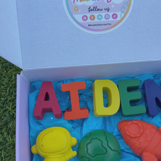 🌈 Kids Personalized Name Crayons & Shape Set – Custom Color-Coded Fun Shapes!