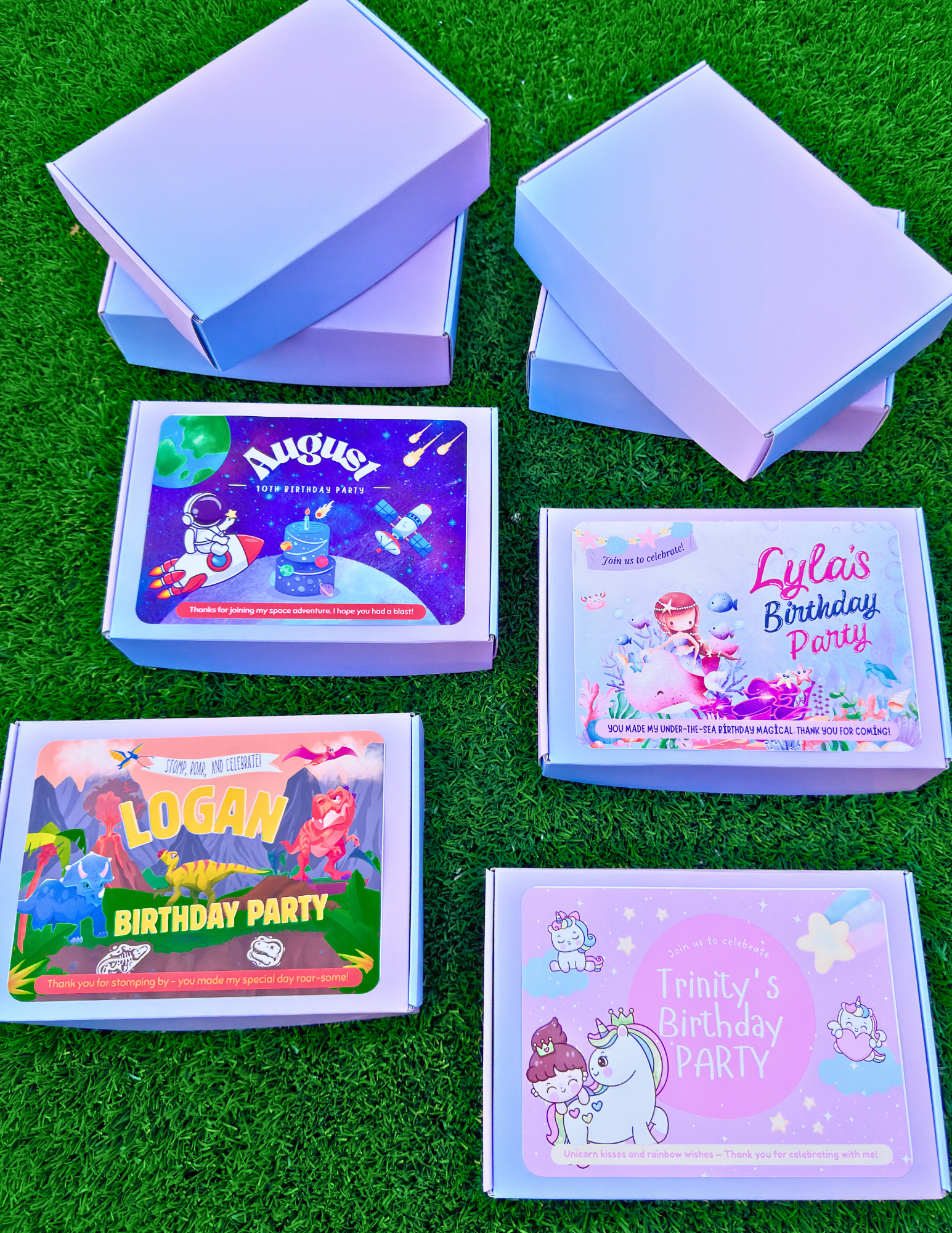 We offer pre-designed themed labels to match or coordinate with your party theme, making your kit a ready-to-go, personalized keepsake. If your party theme isn’t listed, don’t worry you can reach out to us, and we’ll help design a custom label just for you. You’ll have the chance to review, request changes, and approve it before printing, ensuring a perfectly personalized touch for your celebration.