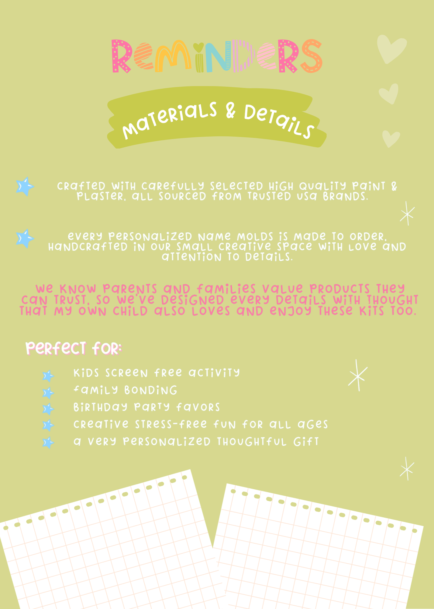 Perfect for birthday parties, classroom events, art workshops, playdates, or family craft time, this kit also doubles as a thoughtful, stress-free party favor or keepsake, leaving every guest with a special handmade memory. Loved by parents for being high-quality, creative, and hassle-free, it’s the ultimate personalized party activity that turns any celebration into a fun, memorable, and hands-on experience.