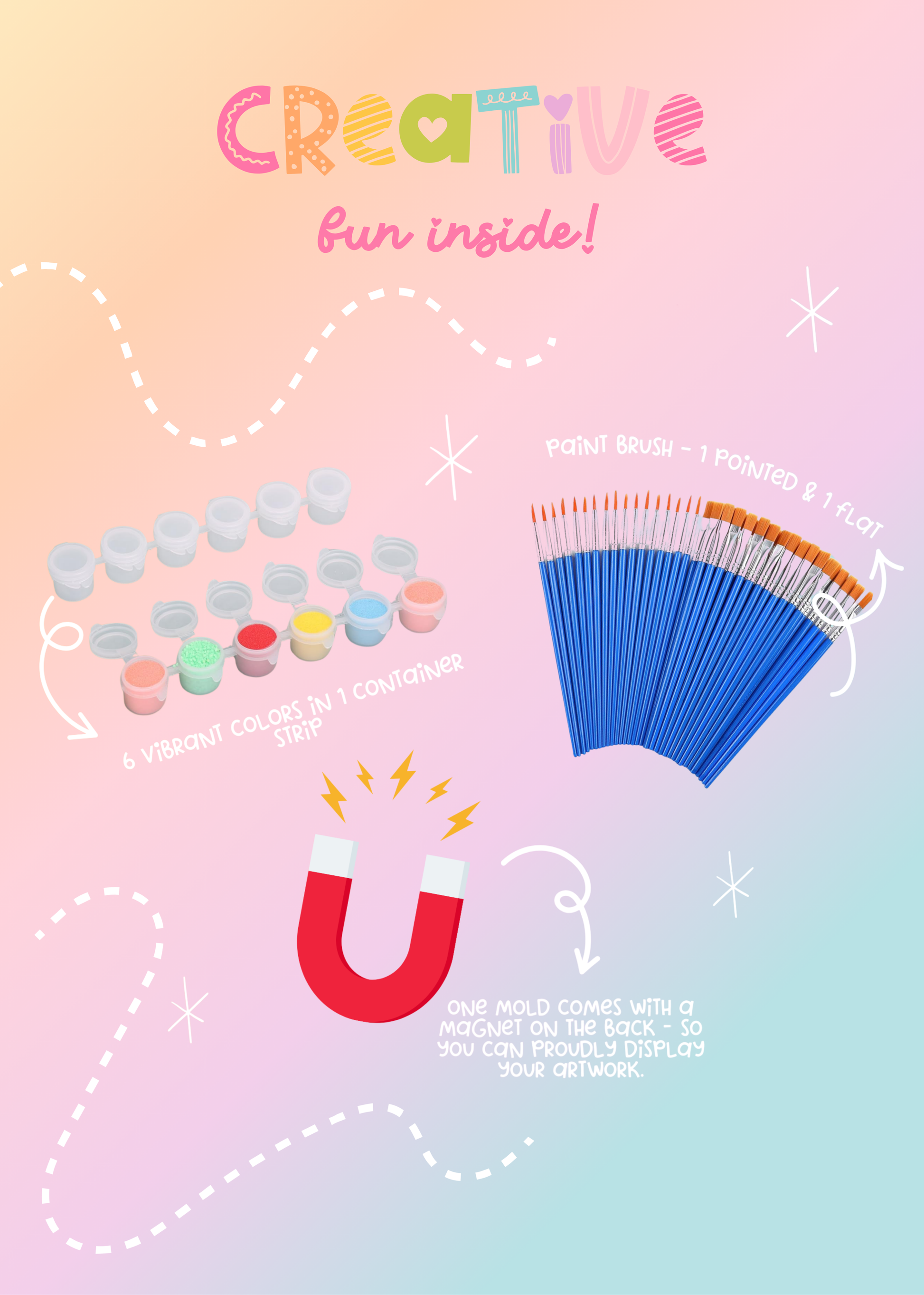 ✔ One Magnetic Mold – display your finished artwork on the fridge